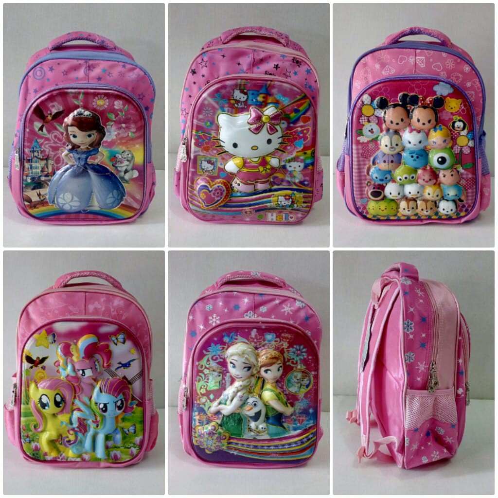Motif yang menghiasi tas anak kecil perempuan ini adalah unicorn kuncir dua. Tas ransel anak ini biasanya dipakai untuk sekolah dan rekreasi dan desain gambar di tas ransel anak tersebut biasanya bergambar karakter tokoh anak untuk menambah daya tarik anak. Karakter unicorn pastinya sudah dikenal dan menjadi idola anak anak perempuan. Dalam memilih sepatu bagi anak perempuan hal penting yang perlu diperhatikan adalah model.